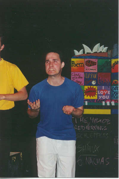 Six Naches' Joel Goodman as "Ari" is taught the more unusual extremes of the "Art of Love" by team-mate Heather Brandon in a 'subtitles scene'.